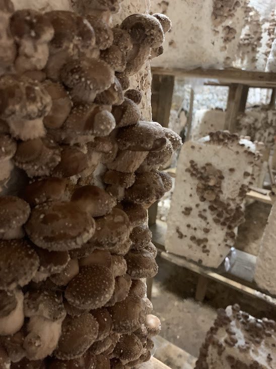 Nous produisons principalement et transformons deux variétés de champignons BIO: le SHIITAKE et la PLEUROTE. En automne nous complétons notre offre ,en cueillant lactaires et chanterelles en forêt. Nous proposons un traiteur bio , local et végétal. Depuis notre aménagement à Antibes, nous envisageons de reprendre la production de micro pousses, des plants aromatiques et des fleurs comestibles. Fourchette et Grelinette, les ateliers @delapoussealassiette se développe dans tout PACA